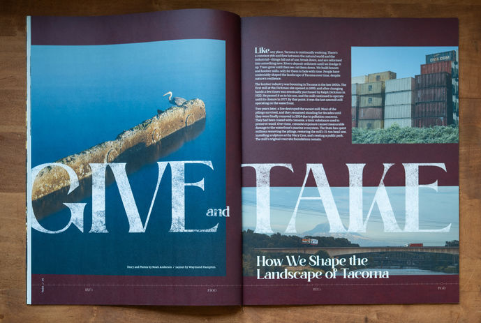 In 2025 I submitted my work to Grit City Magazine, based in Tacoma, WA. Interested in exploring the intersection of industry and nature, I set out to document the impact humans have made on the city and how over time the natural world has responded. Below you will find photographs of the physical copy, as well as the piece itself.